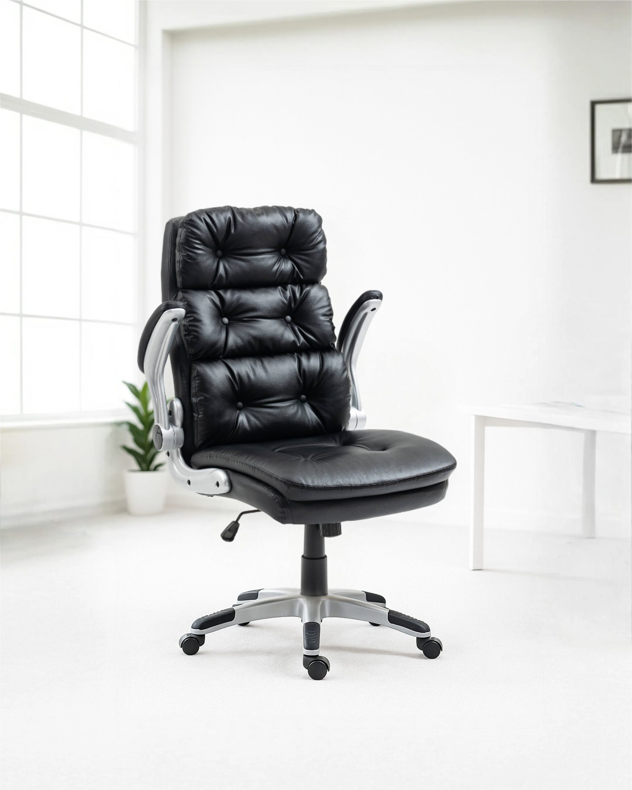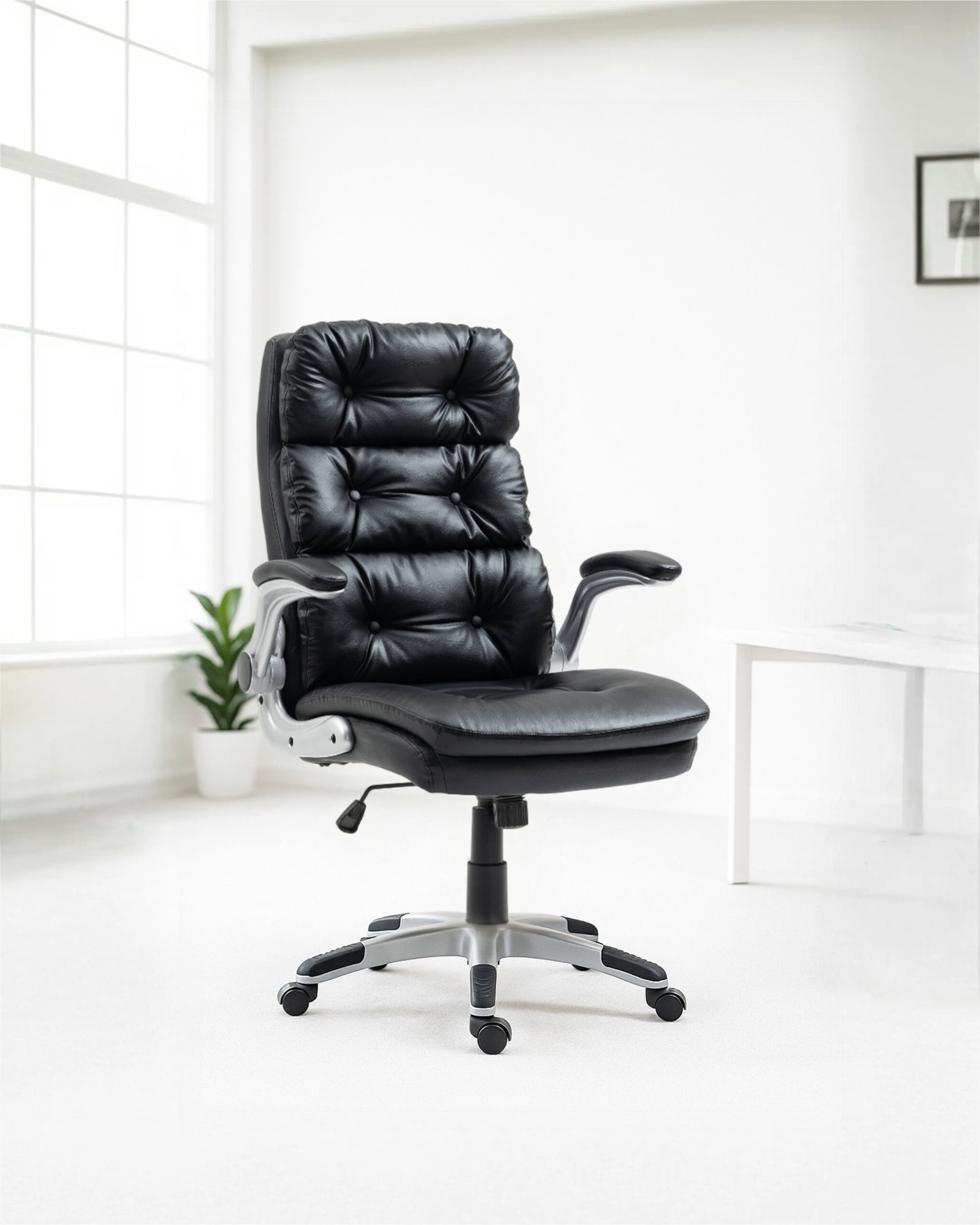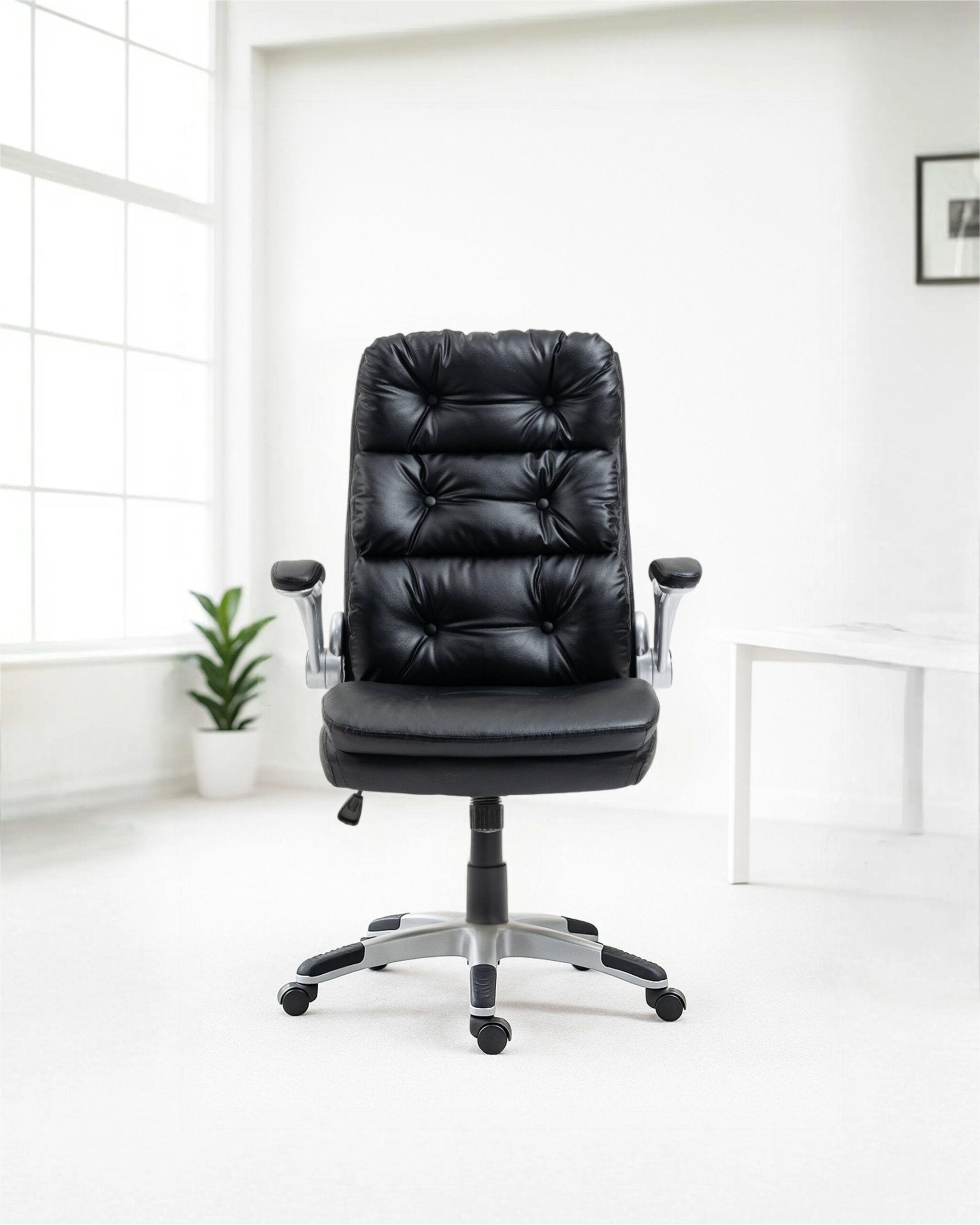 כיסא מנהלים קלאסי גב גבוה ידיות מתכוננות בצבע שחור